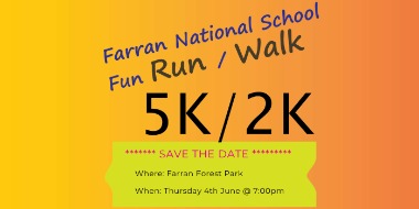 Join us for a 5k/kids 2k fun run in the beautiful surroundings of Farran woods in aid of Farran national school. Suitable for all the family. 5k run is chip timed. Refreshments afterwards. Everyone Welcome!