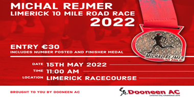 Michal Rejmer memorial 10-mile road race hosted by Dooneen A.C. on Sunday, May 15th starting at Limerick Racecourse.