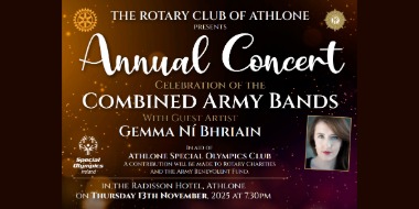 Annual Rotary and Army Concert with Gemma Ní Bhriain takes place on Thursday 13th November @ 7.30pm in the Radisson Hotel, Athlone in aid of Athlone Special olympics.