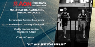 10-week training course with Ciara and Joe preparing for Mullingar Half Marathon. Weekly coached runs Thursdays 7.30pm. Suitable for all levels!