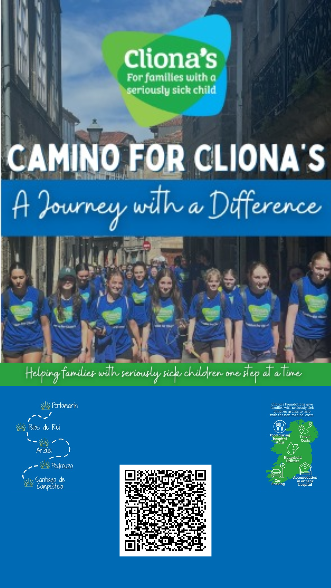 In April and June 2026, our group will join over 200 students and teachers from across Ireland to walk 100km of the Camino de Santiago, from Portomarin to Santiago, over 4 days. Together, we’re walking in solidarity with families facing the emotional and financial challenges of caring for a seriously ill child.