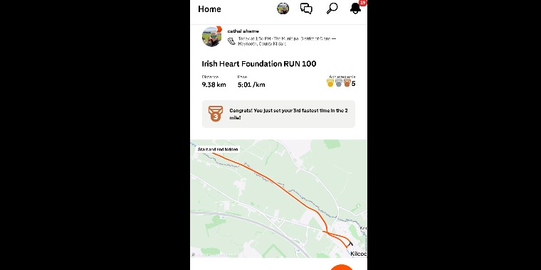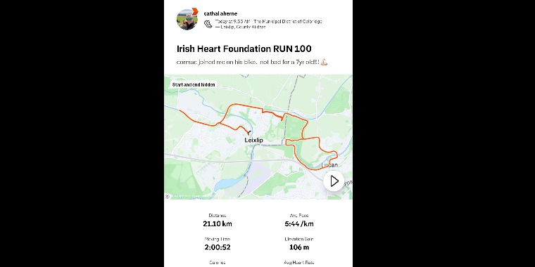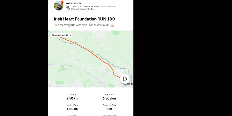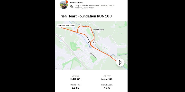 Cathal Aherne fundraising for Irish Heart Foundation with OBS Road Runners in RUN 100 2025