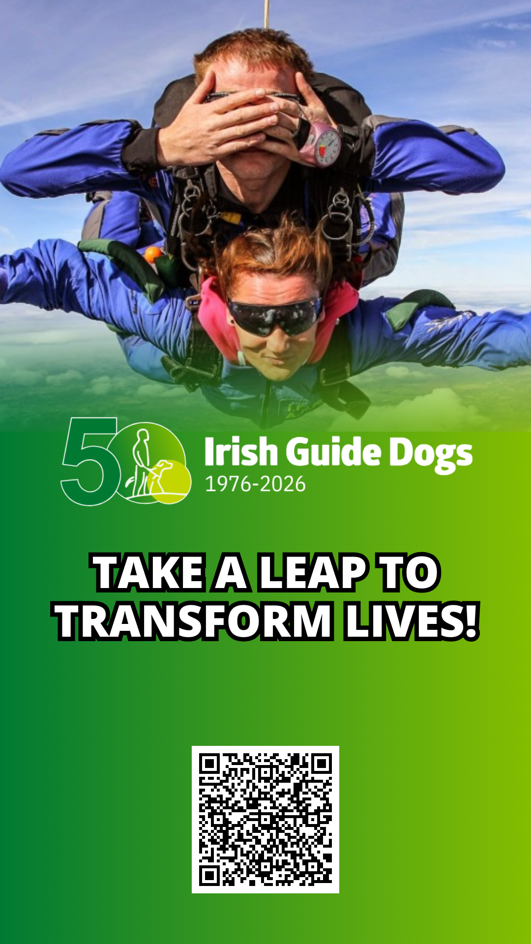 for a celebratory tandem skydive to raise money for the Irish Guide Dogs (IGD)