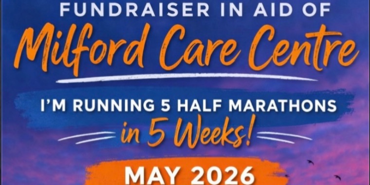 Thanks for taking the time to visit my fundraising 🏃♂️ 5 Half Marathons. 5 Weeks. 1 Great Cause. This May 2026 I’m taking on another big challenge — running 5 Half Marathons in 5 Weeks to raise funds for Milford Care Centre 💙 . Last year we managed to raise €3300 so hopefully we will make another big donation this year . 📅 The runs will take place every Sunday in May . Milford Care Centre provides incredible care and support to patients and families when they need it most. I’d love your support to help raise as much as possible for this amazing service. I witnessed first hand the care shown to people out there when my aunt sadly passed away there recently . I’m sure we all know of someone who has needed care from the team at Milford over the years . This will be just a way of showing our appreciation . Every donation, share, and bit of encouragement means a lot 🙌 .